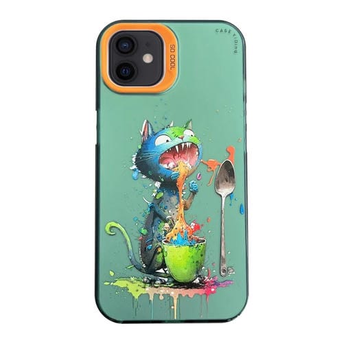 Funda para Teléfono iPhone 12 Cartoon Animal Graffiti PC y TPU (Gato Azul)