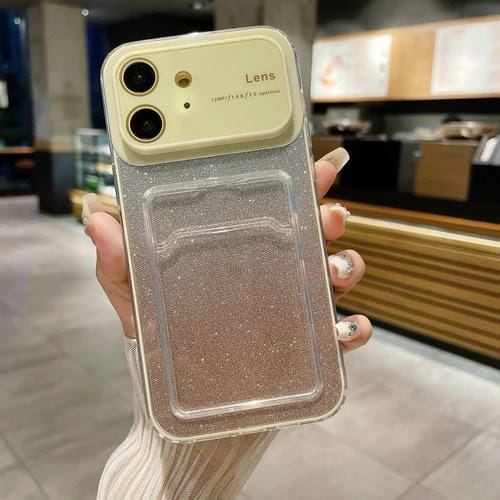 Estuche para Teléfono iPhone 12 con Brillo Degradado Ventana Grande y Ranura para Tarjeta (Amarillo)