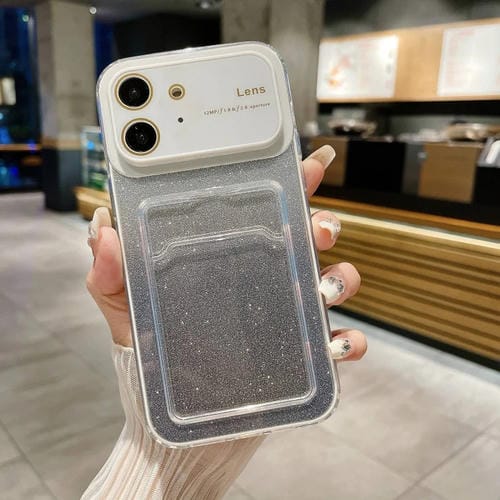 Estuche para Teléfono iPhone 12 con Brillo Degradado Ventana Grande y Ranura para Tarjeta (Blanco)