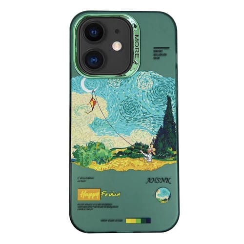 Estuche para Teléfono iPhone 12 con Ilustración Lente Galvanizada (Verde)