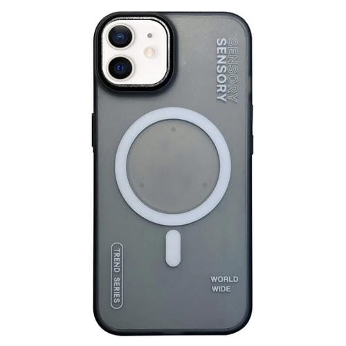 Estuche para teléfono iPhone 12 Magsafe con marco de protección de Lente metal esmerilado (Sensorial Negro)