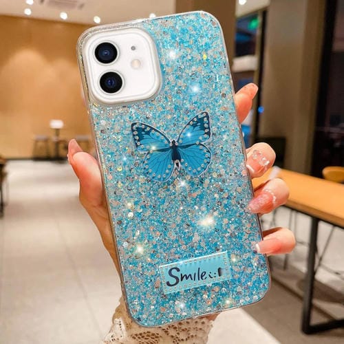 Funda para Teléfono TPU Epoxi iPhone 12 con Diamantes de Imitación y Lentejuelas Estrelladas (Azul)
