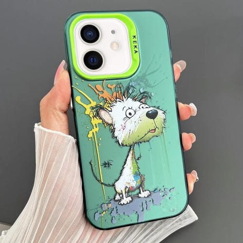 Funda para Teléfono iPhone 12 Imd Animal Graffiti TPU y PC Doble Cara (Perro Verde Blanco Derretido)
