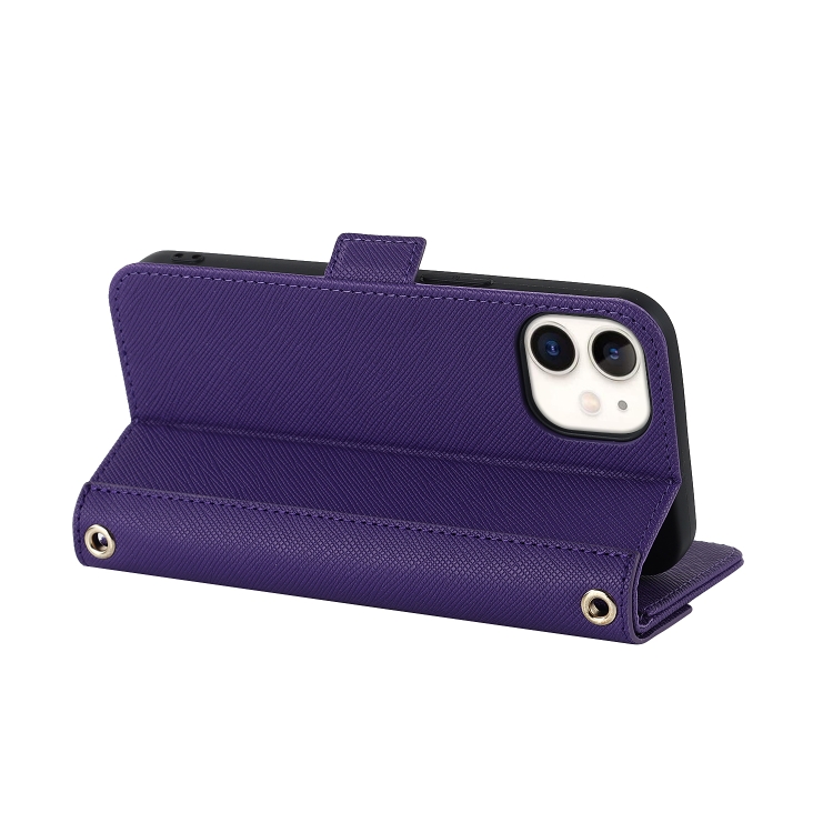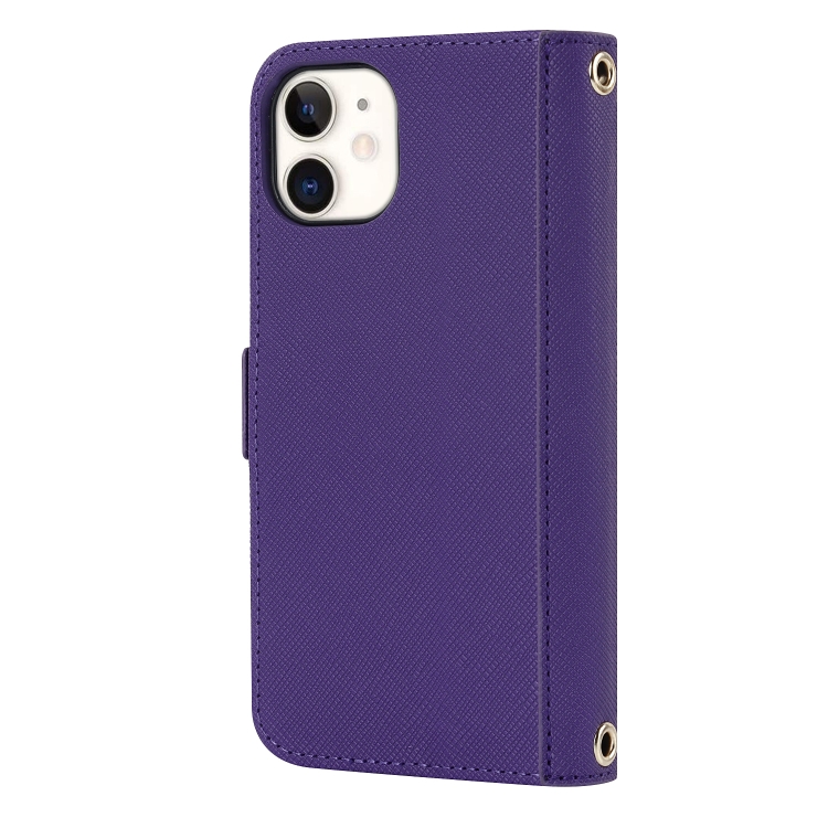 Funda para iPhone 12 Mini Cross Texture Lanyard de Cuero para Teléfono (Púrpura)