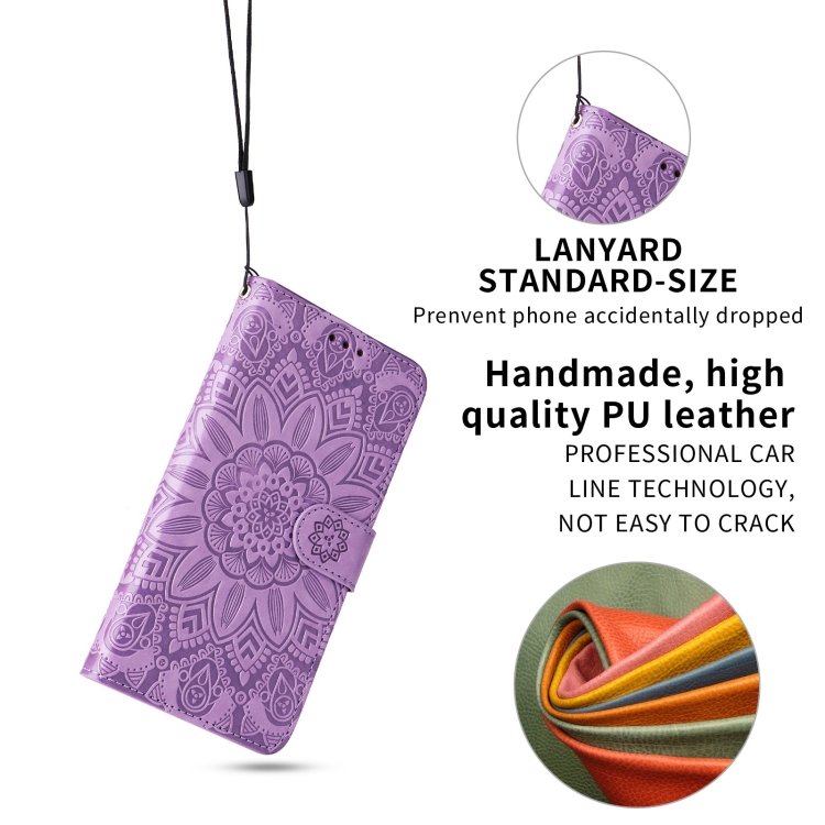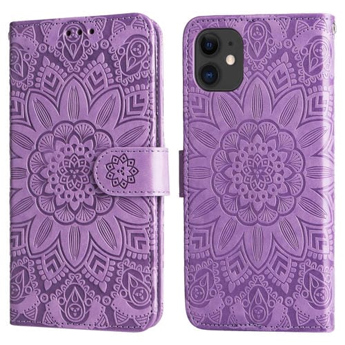 Estuche para teléfono iPhone 12 Mini Cuero con Estampado de Girasol en Relieve (Púrpura)