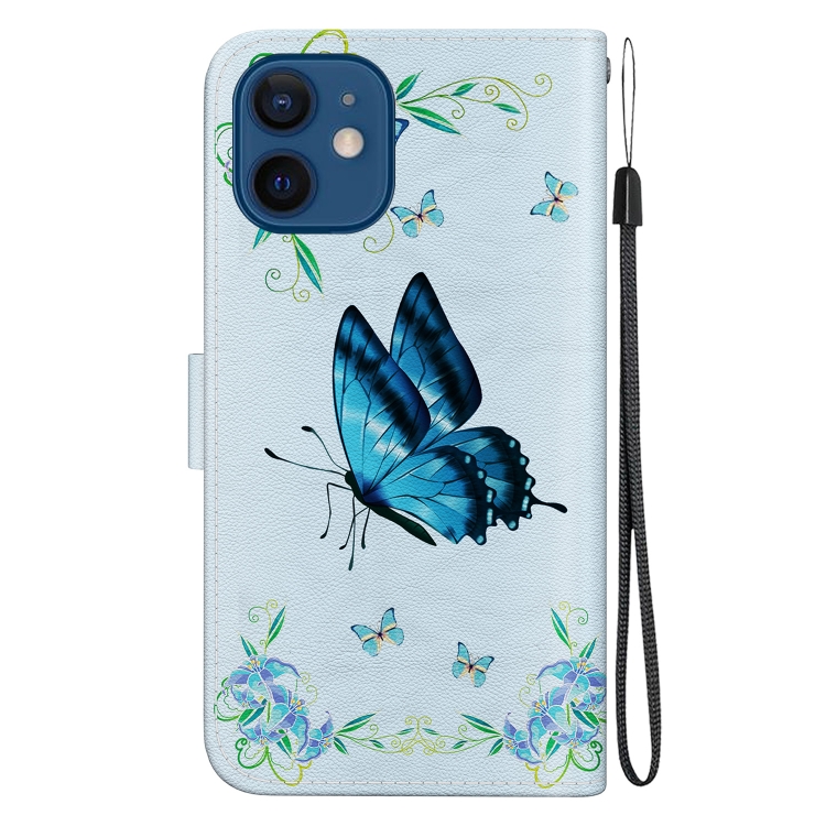 Funda de Cuero para Teléfono iPhone 12 Mini Dibujo Coloreado Textura de Cristal (Azul)