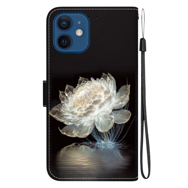 Funda para teléfono iPhone 12 Mini Cuero Dibujo Coloreado Textura de Cristal (Peonía de Cristal)