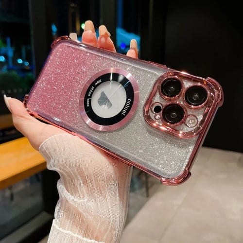 Estuche para Teléfono iPhone 12 Pro 6D Magsafe con Armadura de Brillo Degradado y Galvanoplastia (Rosa)