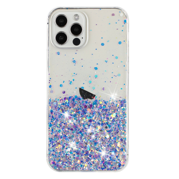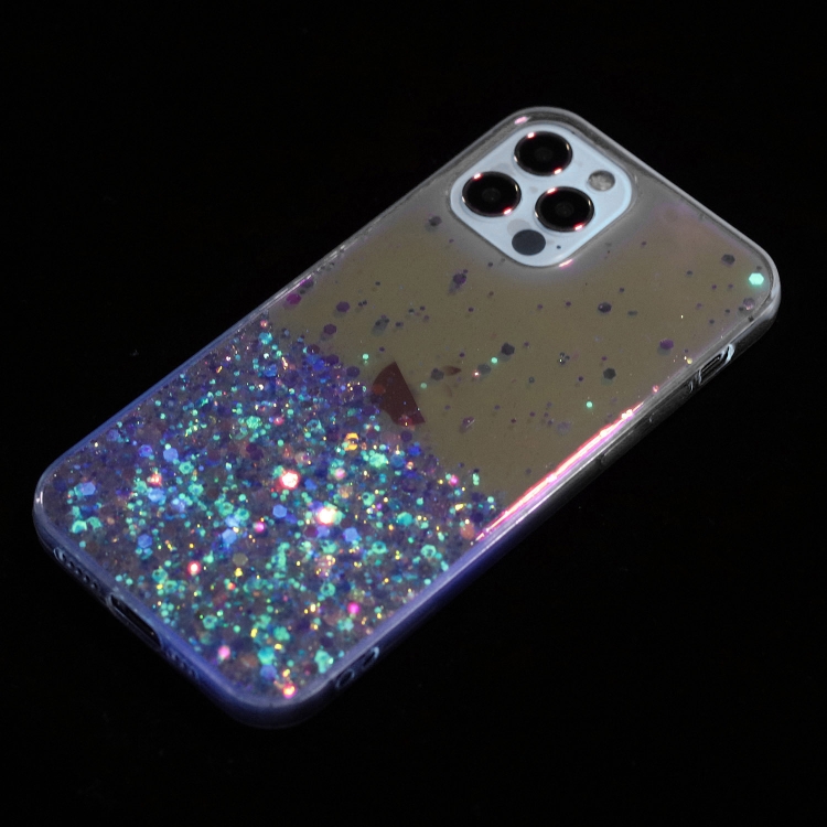 Funda para iPhone 12 Pro TPU con Polvo de Brillo Noctilucente Marco Transparente (Púrpura)