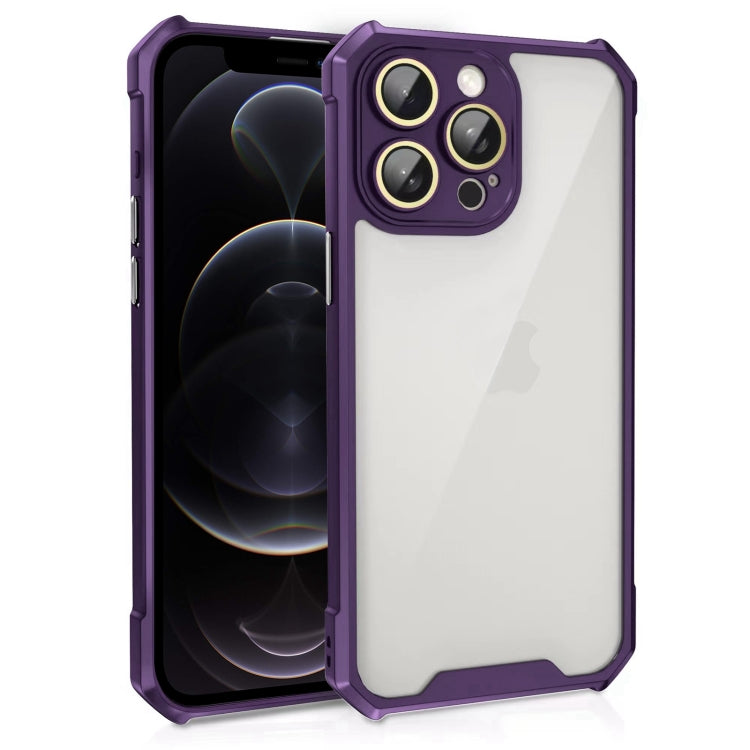 Estuche Acrílico para Teléfono iPhone 12 Pro a Prueba de Golpes con Película de Vidrio para Lentes (Púrpura)
