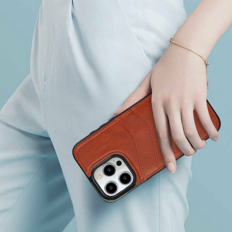 Funda para Teléfono iPhone 12 Pro Piel de Cuero Litchi con Ranuras para Tarjetas (Marrón)