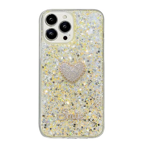 Funda para Teléfono TPU Epoxi para iPhone 12 Pro con Corazón de Diamante y Lentejuelas Estrelladas (Amarillo)