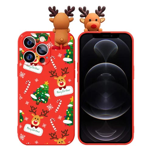Funda para Teléfono TPU Suave iPhone 12 Pro Muñeco en Relieve Ciervo Dibujo Coloreado (Árbol de Navidad)