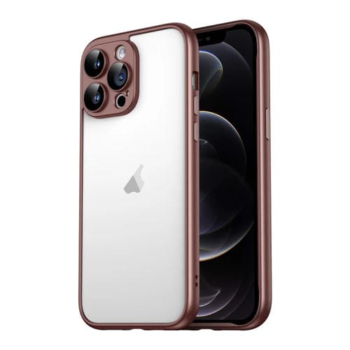 Marco de Borde Puro para iPhone 12 Pro Macaron PC con Película de Vidrio para Lentes (Marrón)