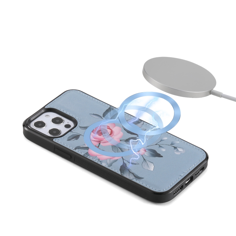Funda de Cuero iPhone 12 Pro Magsafe con Billetera Cruzada Multifuncional y Cremallera (Azul)