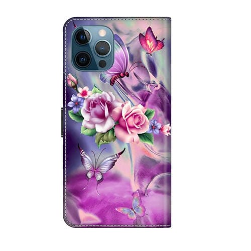 Funda Protectora de Cuero iPhone 12 Pro Max y 13 Pro Max Crystal 3D a Prueba de Golpes (Mariposa)