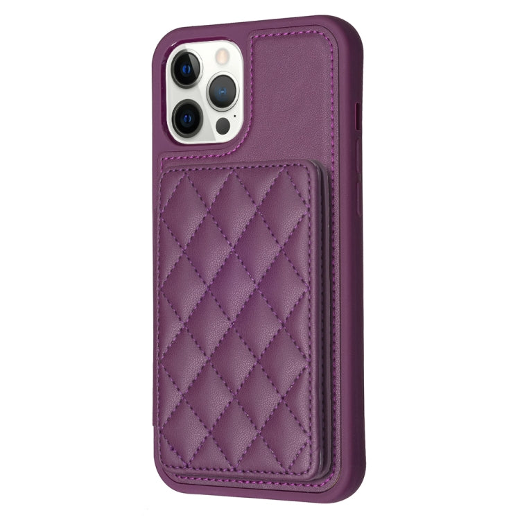 Funda para Teléfono iPhone 12 Pro Max Bf25 Square Plaid Card Bag Holder (Morado Oscuro)