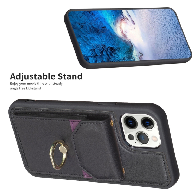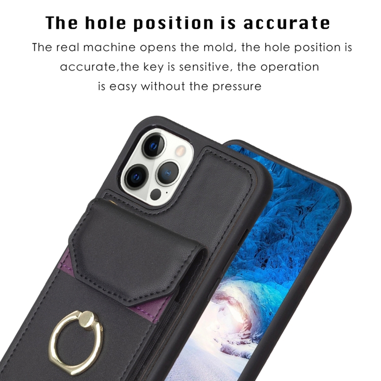 Funda para Teléfono Bf29 iPhone 12 Pro Max con Soporte para Anillo y Bolsa para Tarjeta (Negro)