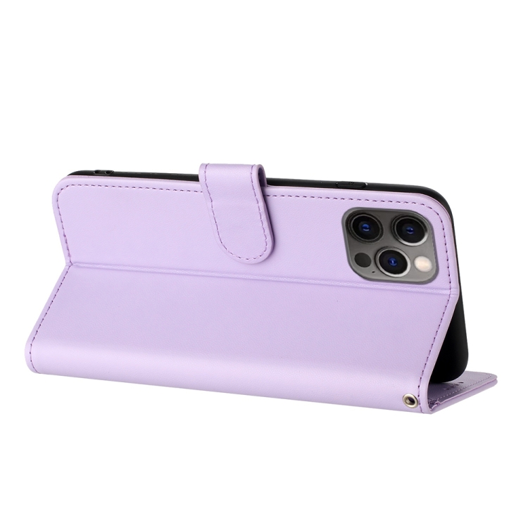 Funda para iPhone 12 Pro Max Datura Flower de Cuero con Tapa en Relieve (Púrpura)