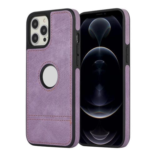 Funda para iPhone 12 Pro Max Empalme Costura Caja de Teléfono de PU con Recorte Hueco (Púrpura)