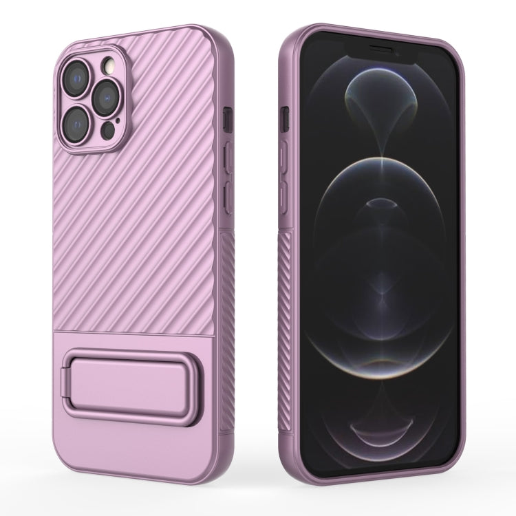 Funda de Teléfono TPU iPhone 12 Pro Max Textura Ondulada Película de Lente (Púrpura)