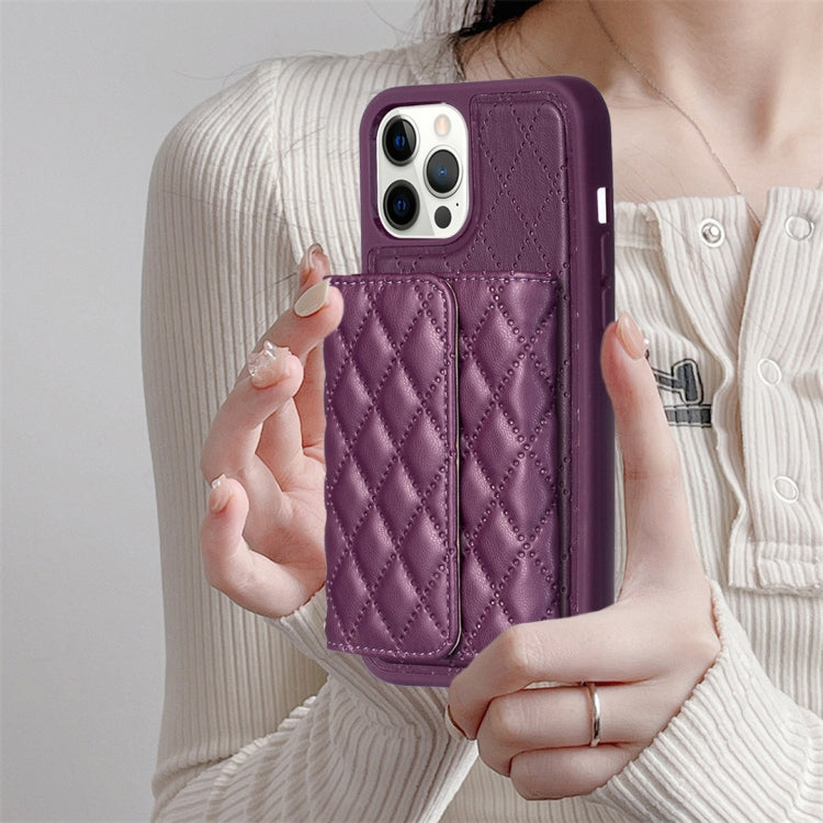 Funda de Cuero Para iPhone 12 Pro Max Horizontal Wallet Rhombic (Púrpura Oscuro)
