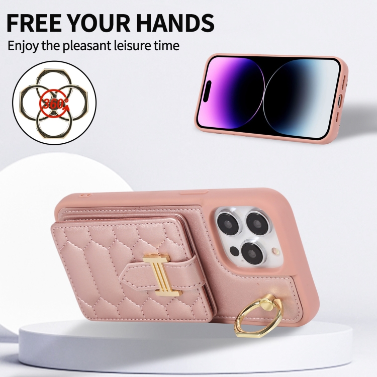 Funda para iPhone 12 Pro Max Vertical Card Bag Ring Holder con Doble Cordón (Oro Rosa)