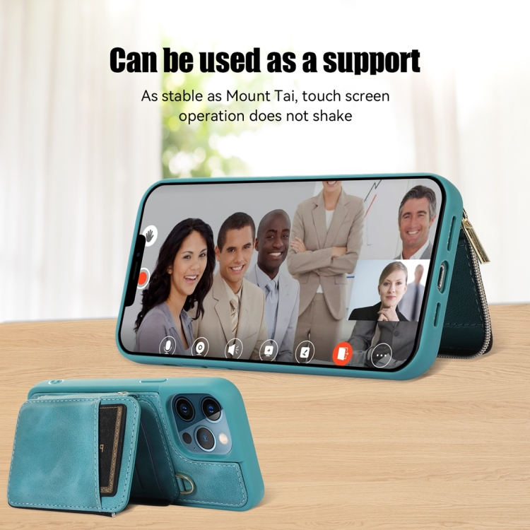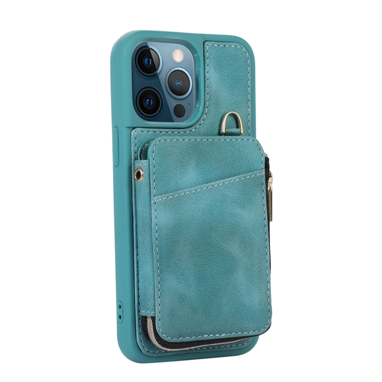 Funda para Teléfono iPhone 12 Pro Max Zipper Card Bag Contraportada (Turquesa)