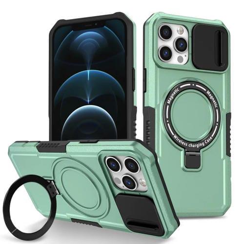 Funda para teléfono iPhone 12 Pro Sliding Camshield Magsafe Holder TPU Hybrid (Azul Claro)