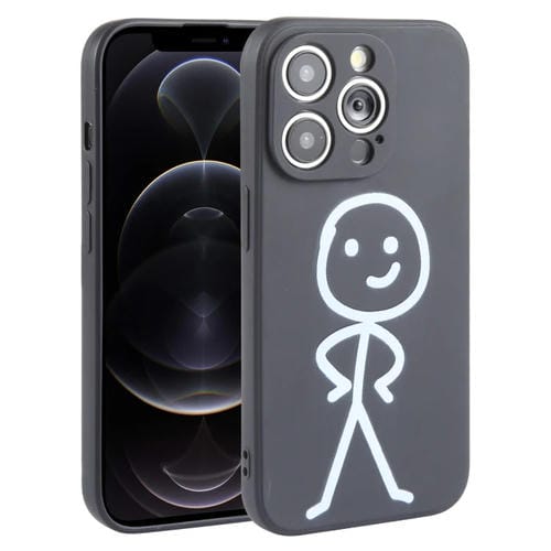 Funda de teléfono iPhone 12 Pro Stickman Pattern Silicona Líquida (Negro)