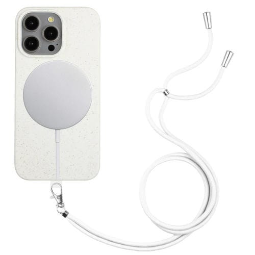 Funda para Teléfono iPhone 12 Pro Wheat Magsafe Material de Paja Magnético + TPU con Cordón (Blanco)