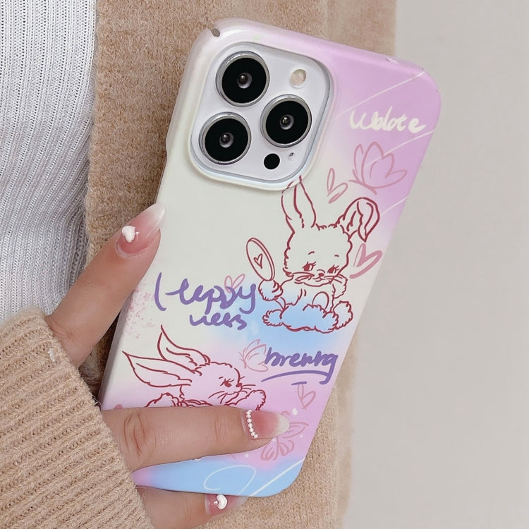 Caja de teléfono PC para iPhone 13 con patrón pintado línea rosa conejito