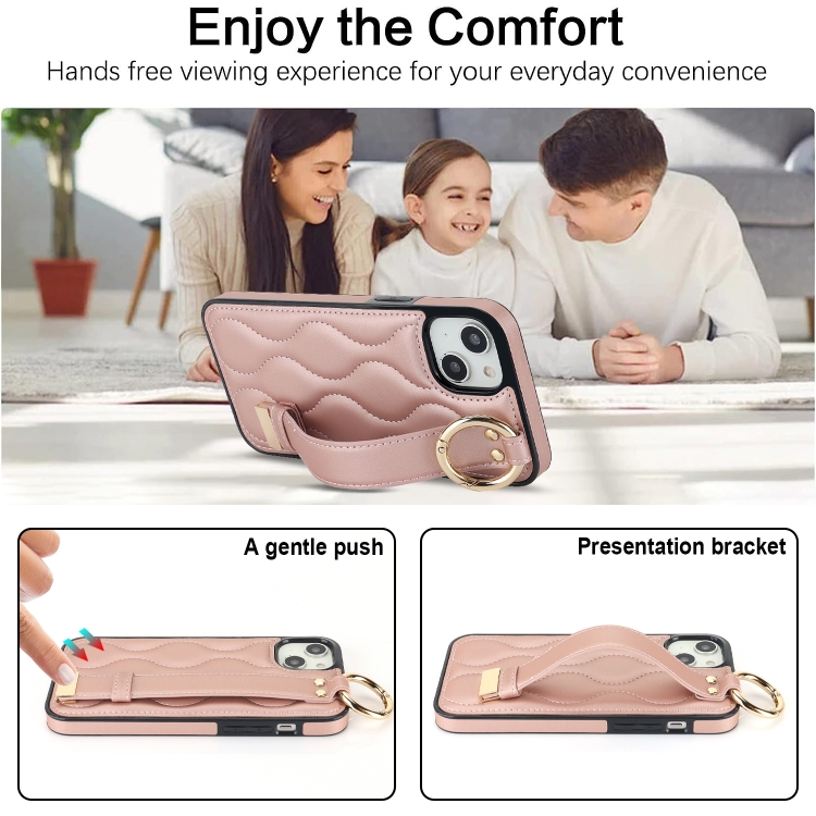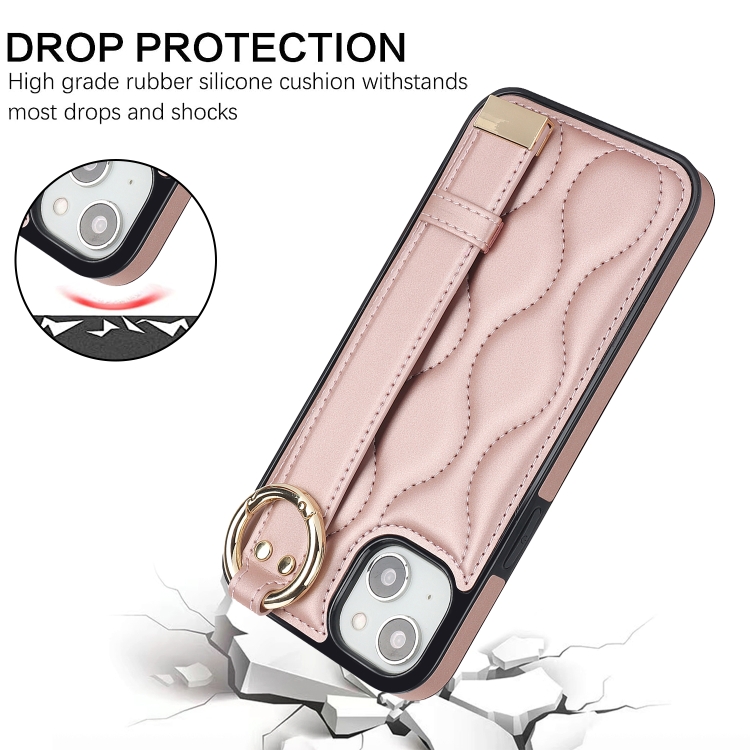 Funda para iPhone 13 Antideslizante con Anillo Cobertura Completa Pu con Muñequera (Oro Rosa)