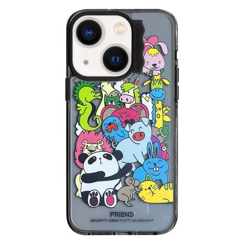 Funda para Teléfono iPhone 13 Patrón Creativo Círculo de Ondas Coloridas (Animales Negros)