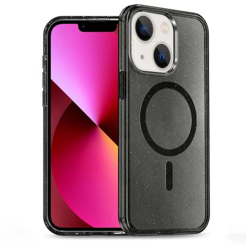 Funda para Teléfono iPhone 13 Glitter Powder TPU Hybrid PC Magsafe (Negro)
