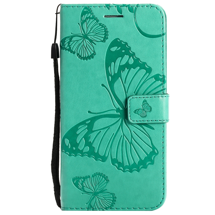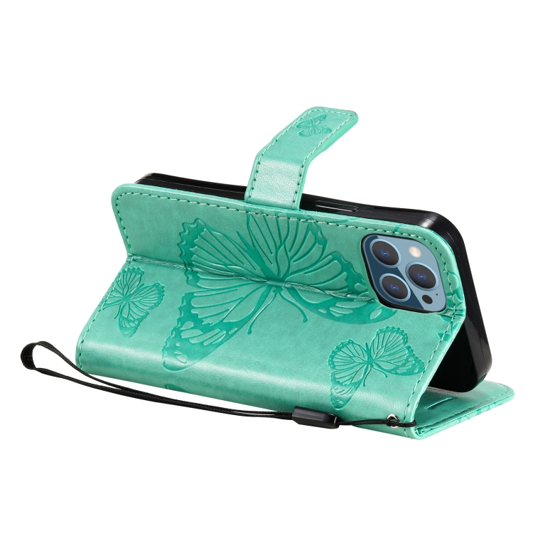 Funda de Cuero iPhone 13 Mini Patrón Mariposa 3D con Tapa Horizontal Soporte Ranura Tarjeta Billetera y Cordón (Verde)