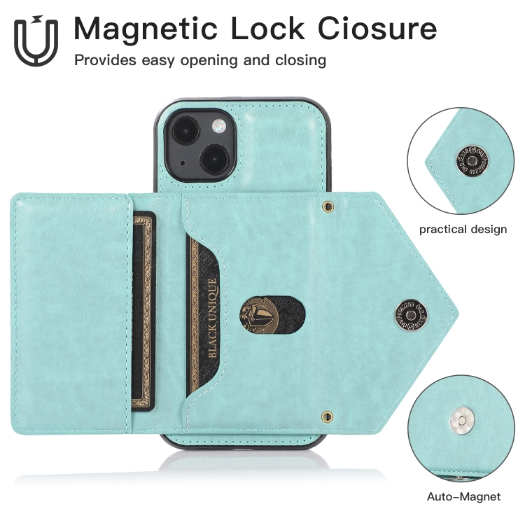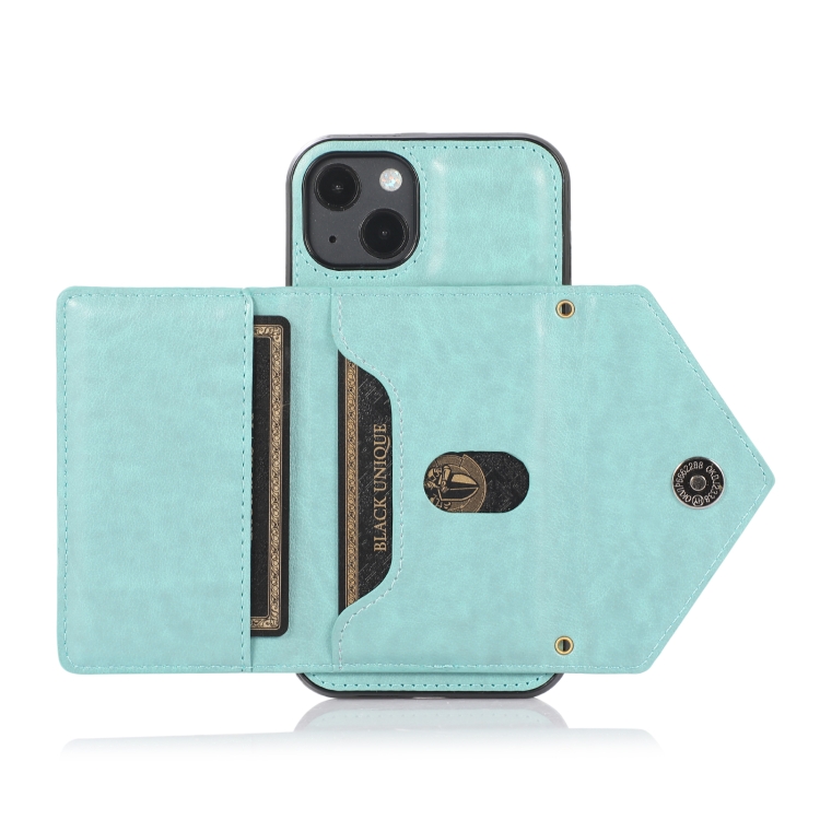 Funda para iPhone 13 Mini TPU + PU con Soporte y Ranura para Tarjeta y Billetera (Verde)