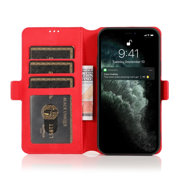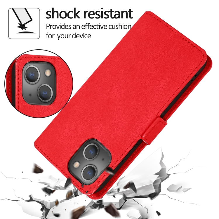 Estuche de Cuero para iPhone 13 Mini Cierre Magnético Tapa Horizontal Soporte Ranuras Tarjetas Marco Fotos Billetera (Rojo)