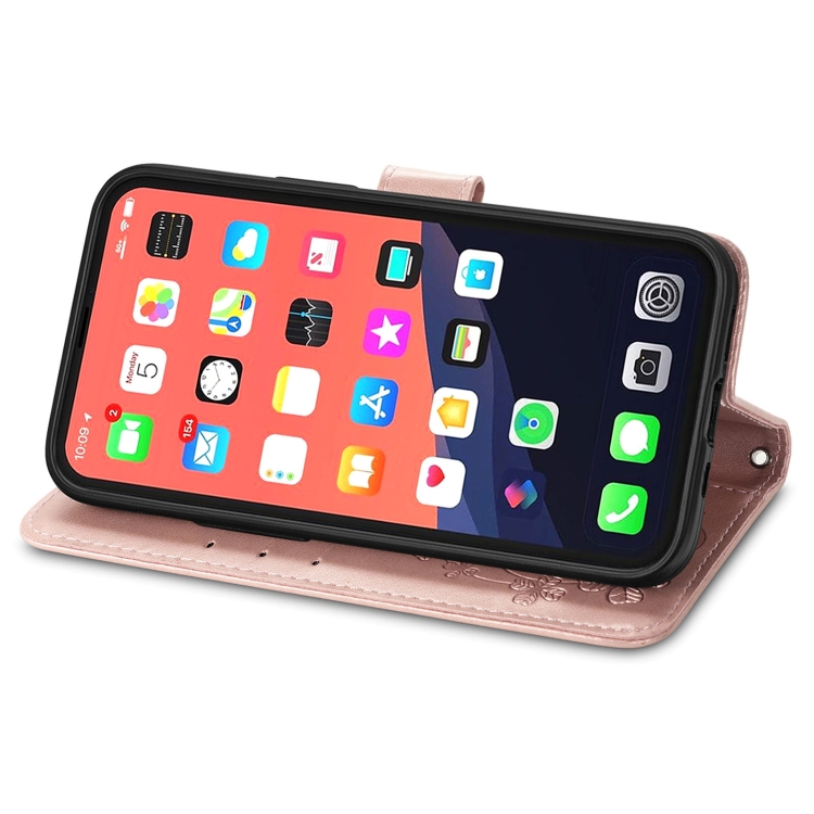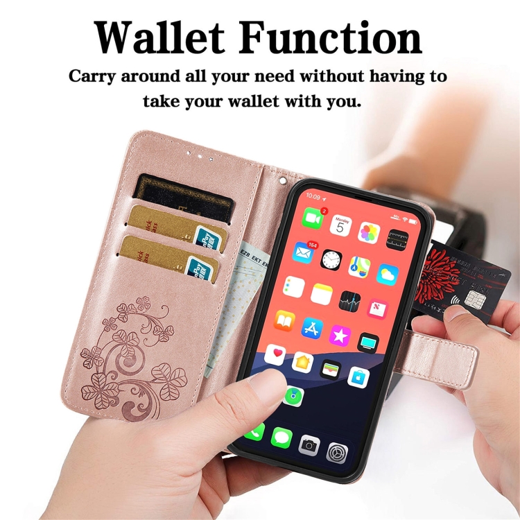 Funda de Cuero para iPhone 13 Mini Cierre Trébol Hebilla Ranura Tarjeta Soporte (Oro Rosa)