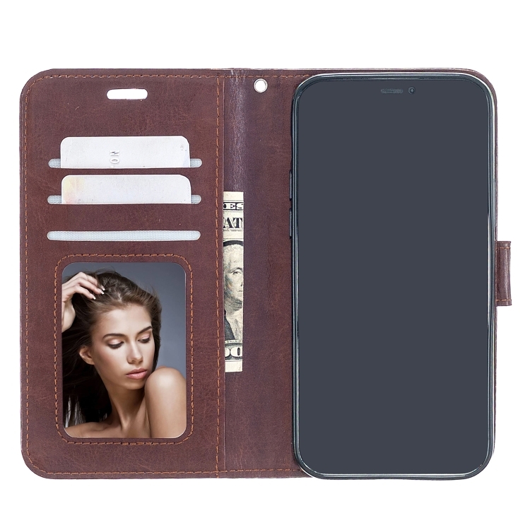 Funda de Cuero para iPhone 13 Mini Crazy Horse Texture con Tapa Horizontal, Soporte, Ranuras para Tarjetas, Billetera y Marco de Fotos (Marrón)