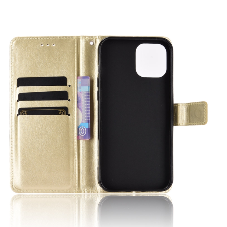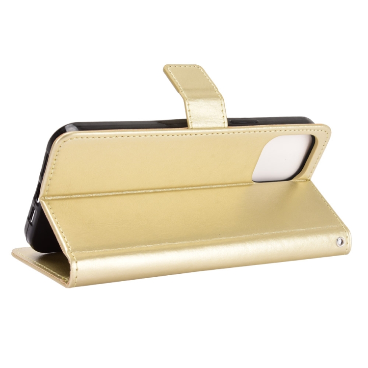 Funda para iPhone 13 Mini Crazy Horse Texture Cuero con Tapa Horizontal Soporte Ranuras Tarjetas Cordón (Dorado)