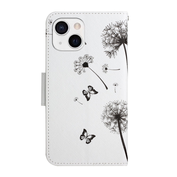 Estuche de Cuero para iPhone 13 Mini con Tapa Horizontal, Soporte, Ranura para Tarjeta y Billetera (Diente de León)