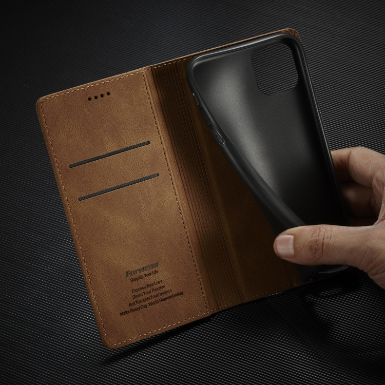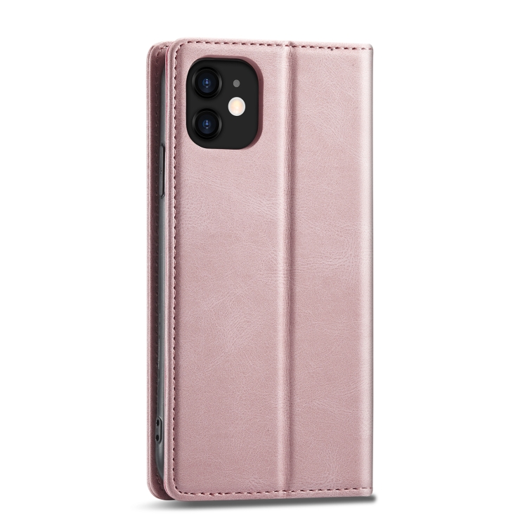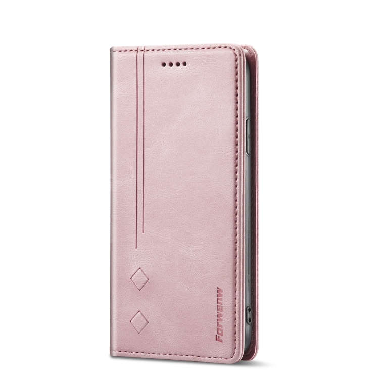 Estuche de Cuero FoRWenw F2 Series para iPhone 13 Mini con Tapa Horizontal Magnética Soporte y Ranuras para Tarjetas (Oro Rosa)