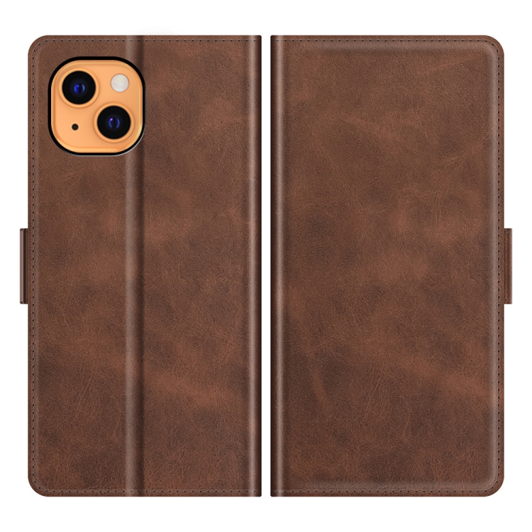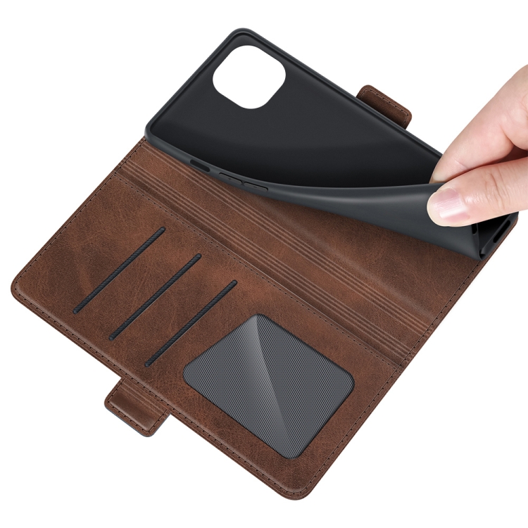 Funda de Cuero para iPhone 13 Mini con Tapa Horizontal Hebilla Magnética Soporte Ranuras para Tarjetas y Billetera (Marrón)