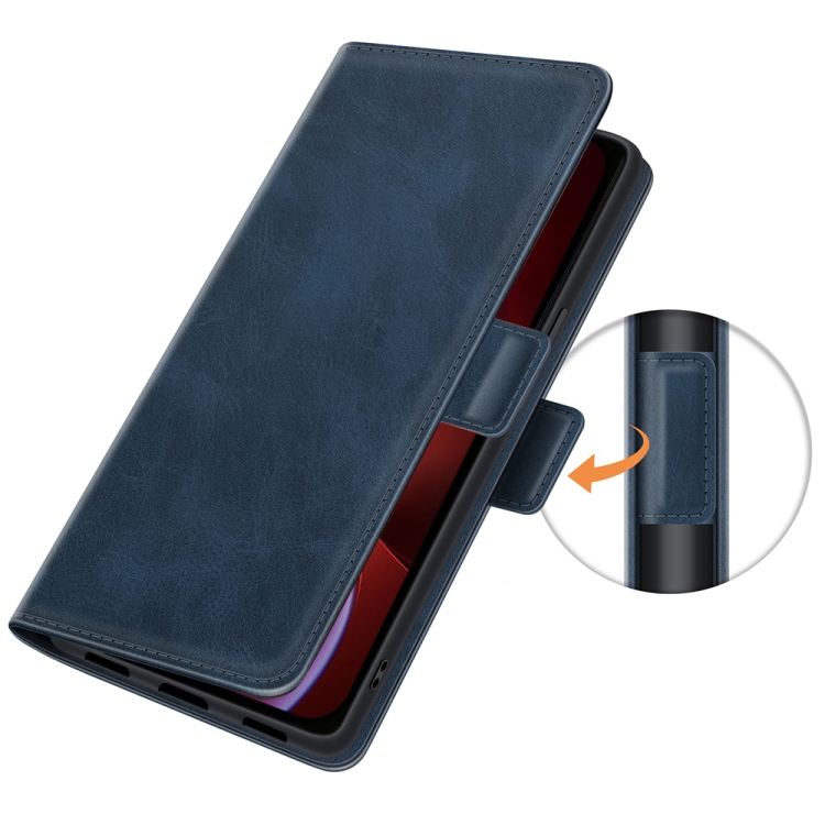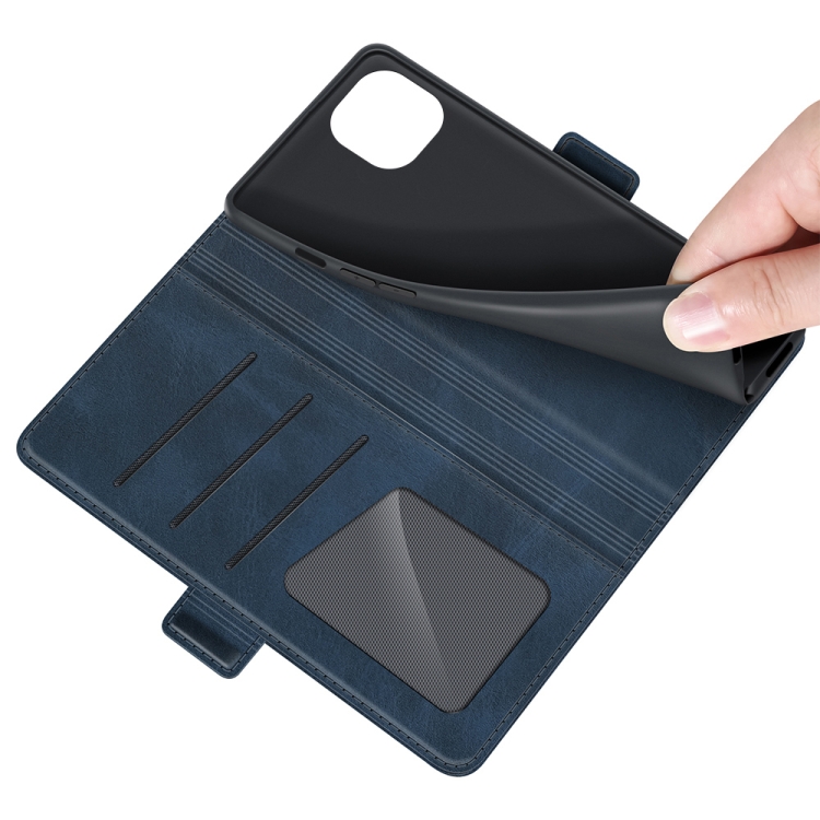 Funda de Cuero para iPhone 13 Mini con Tapa Horizontal Hebilla Magnética Soporte Ranuras para Tarjetas y Billetera (Azul Oscuro)
