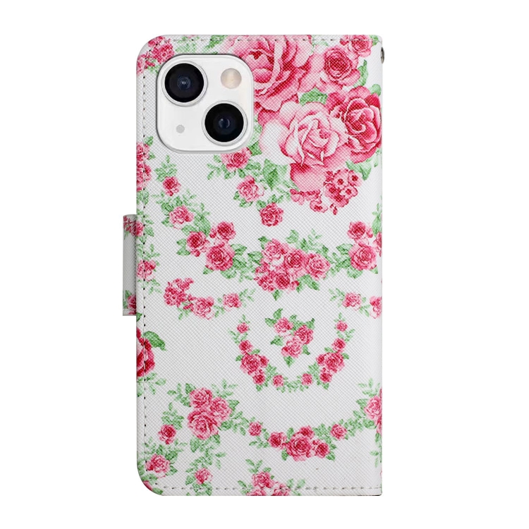 Funda de Cuero para iPhone 13 Mini con Tapa Horizontal, Soporte, Ranura para Tarjeta y Billetera (Flor de Rosa)