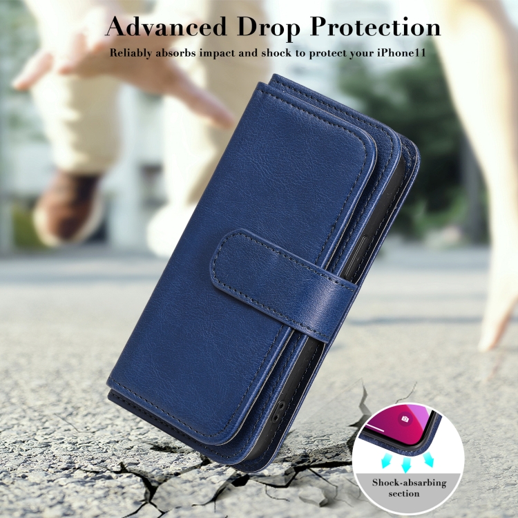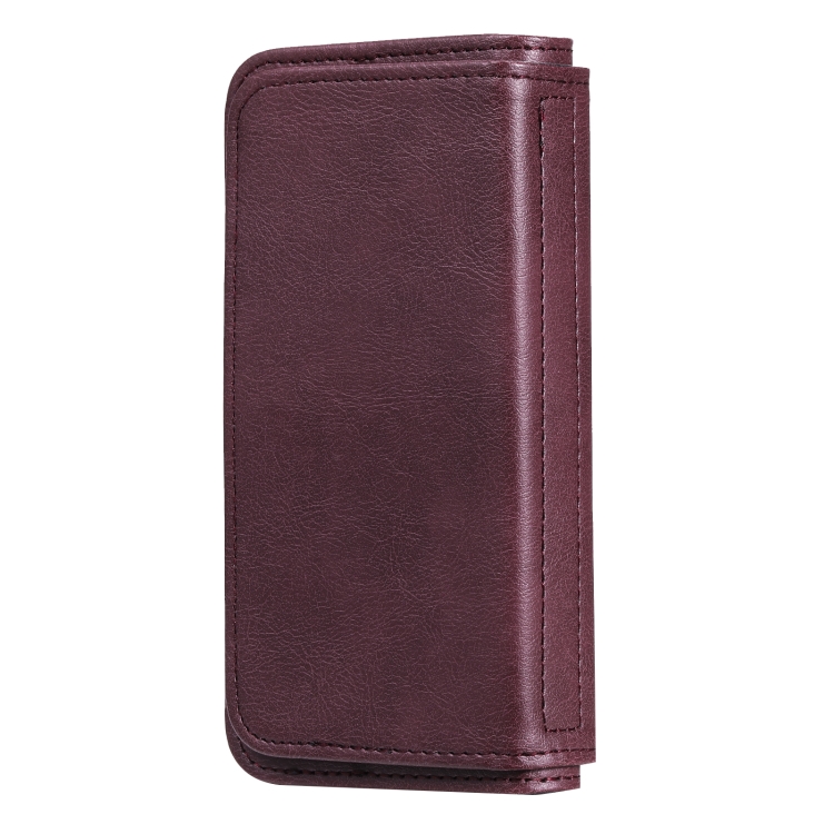 Funda de Cuero para iPhone 13 Mini con Tapa Horizontal Hebilla Magnética y 10 Ranuras (Rojo Vino)