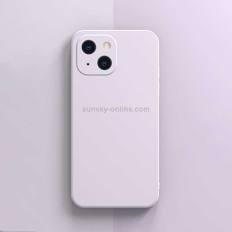 Funda de Silicona Líquida para iPhone 13 Mini Borde Recto Cubo Color Sólido (Púrpura)