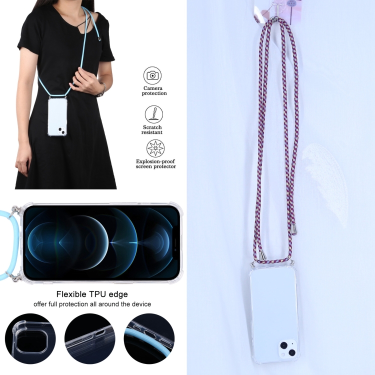Funda Protectora TPU para iPhone 13 Mini a Prueba de Golpes con Cordón (Rojo, Gris, Amarillo)