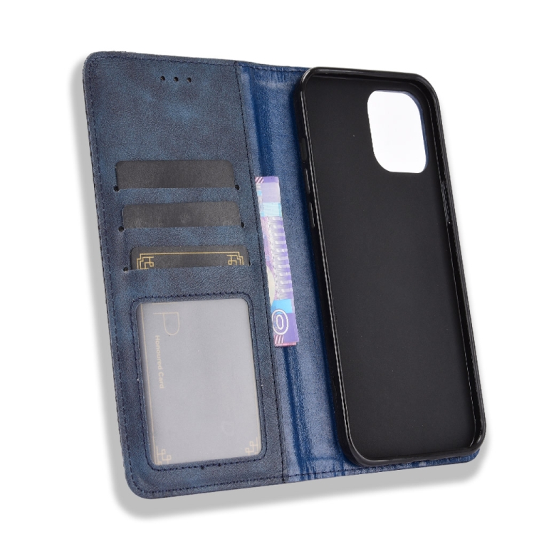 Funda de Cuero iPhone 13 Mini Hebilla Magnética Patrón Retro Tapa Horizontal Soporte Ranura Tarjeta Billetera (Azul)